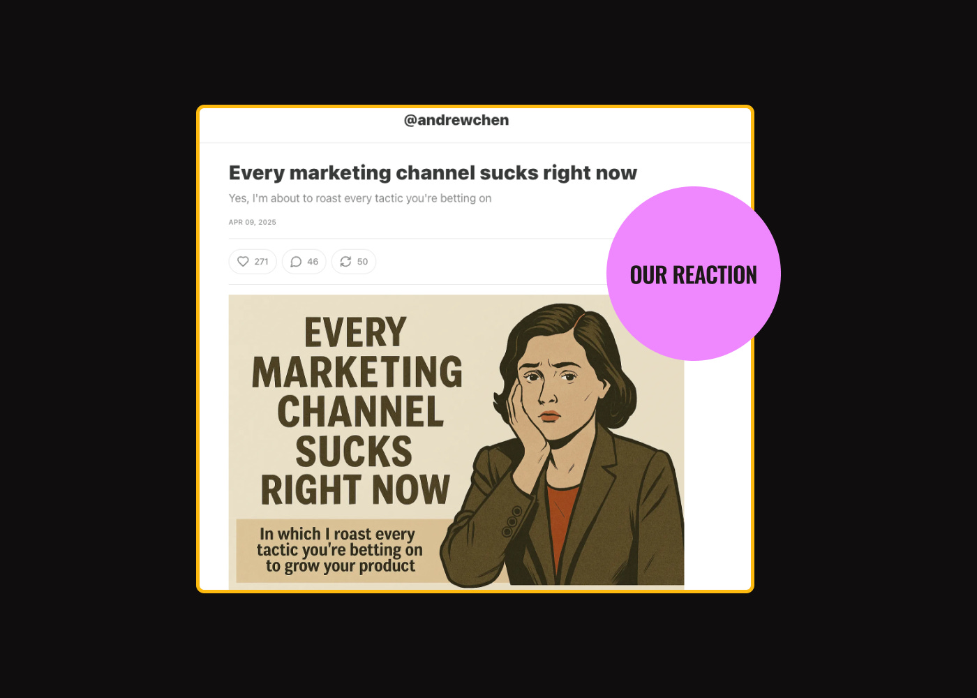 A reaction to Andrew Chen's Substack post: "Every marketing channel sucks right now"