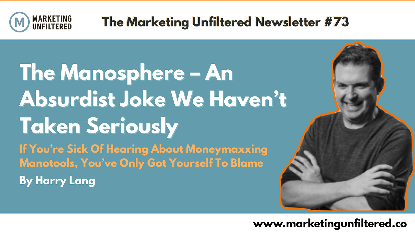 Welcome back to #73, this week we switch up the pace with Harry tackling the making and marketing of the Manosphere.
